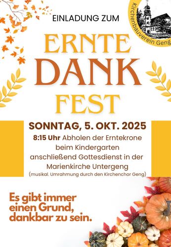 Herzliche Einladung zum Erntedankfest am Sonntag, 5. Oktober!