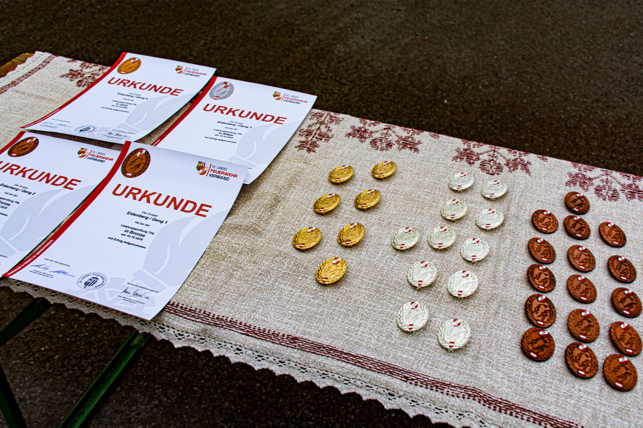 Gemeinsam mit der FF Eidenberg durften wir diese Prüfung mit insgesamt 4 Gruppen erfolgreich meistern. Angetreten sind 2 Gruppen in Bronze, eine Gruppe in Silber sowie eine Gruppe in Gold. Dank der guten Zusammenarbeit mit der FF Eidenberg waren wir auf diese Prüfung bestens vorbereitet. Die Hauptbestandteile der Prüfung setzen sich aus Fahrzeugkunde und dem Abarbeiten eines technischen Einsatzes (Verkehrsunfall) zusammen. Dabei steigert sich die Schwierigkeit in Abhängigkeit zur Abnahmestufe (Bronze, Silber, Gold) dementsprechend.