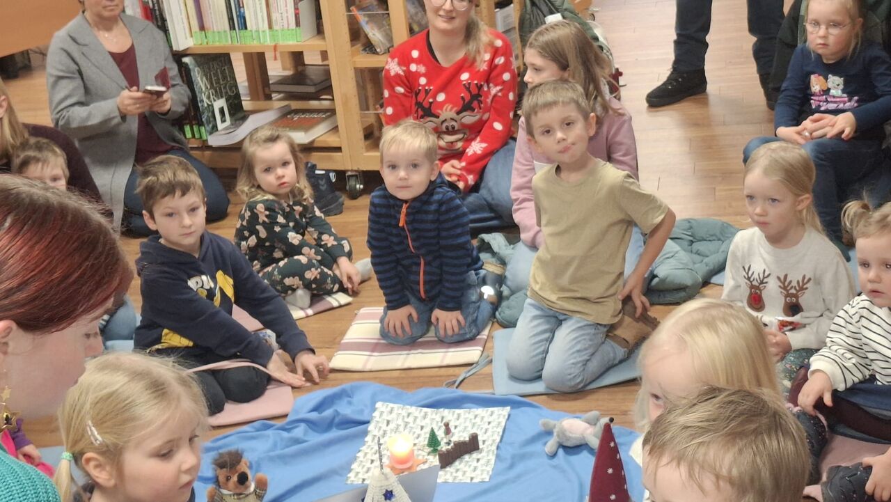Das Vorlesen in der Bücherei besuchten 30 Kinder. Sie freuten sich besonders über die von Hand verpackten Lebkuchen-Geschenke. Gleichzeitig waren auch die Ponys unterwegs und machten den Kindern beim Reiten viel Freude.